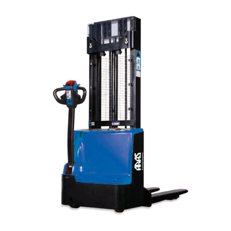 Comfortable and efficient patented intelligent handle and control system, ideal for replacing manual & semi electric stackers, for light use in narrow warehouse environments with efficient and easy pallet stacking.