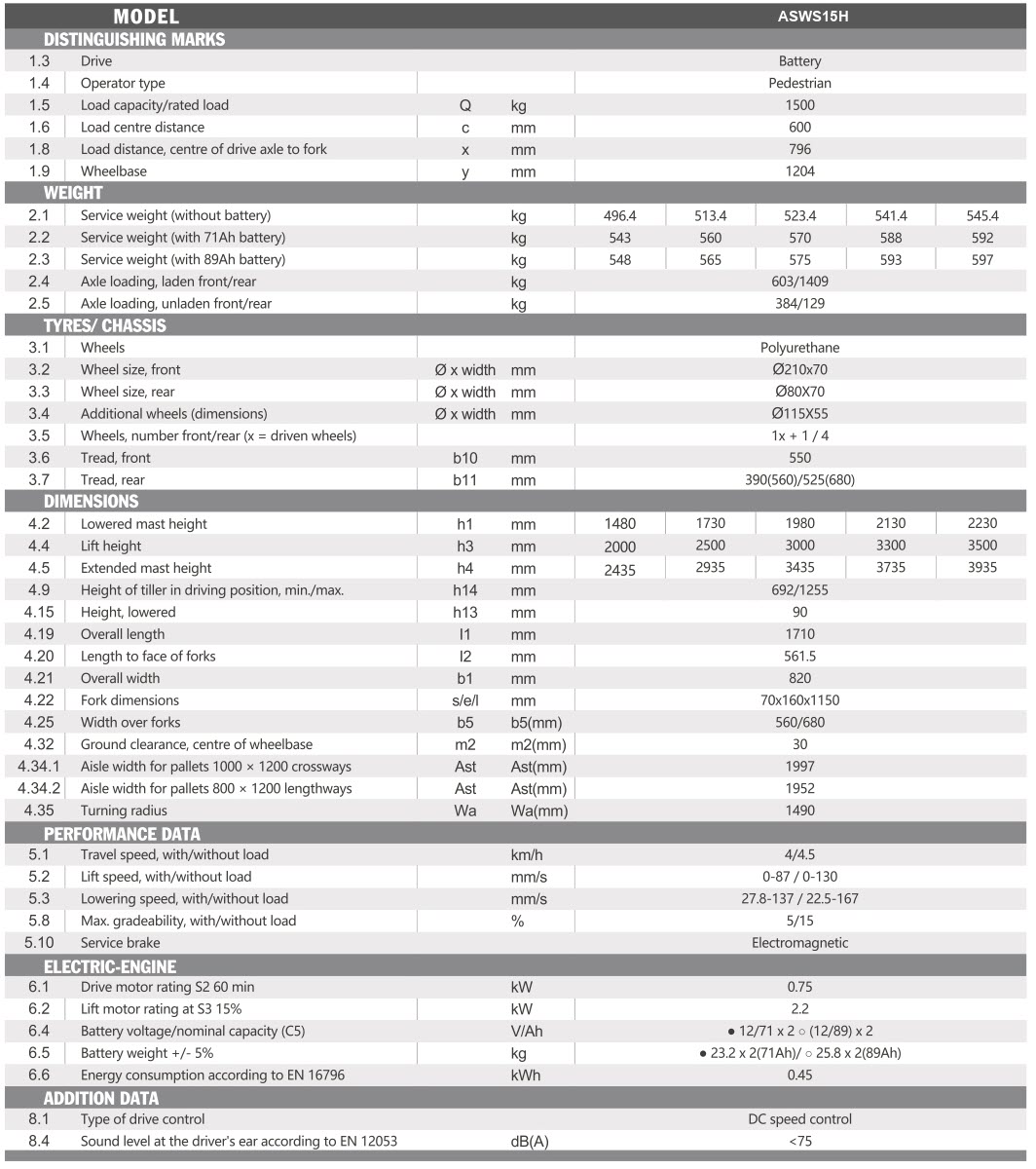 | Type of lift | Full Electric |