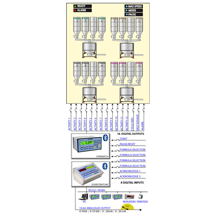 3590EXT and CPWE weight indicators software version for automatic multicomponent and multi scale dosage systems. Database of 100 different activities and 500 formulas.