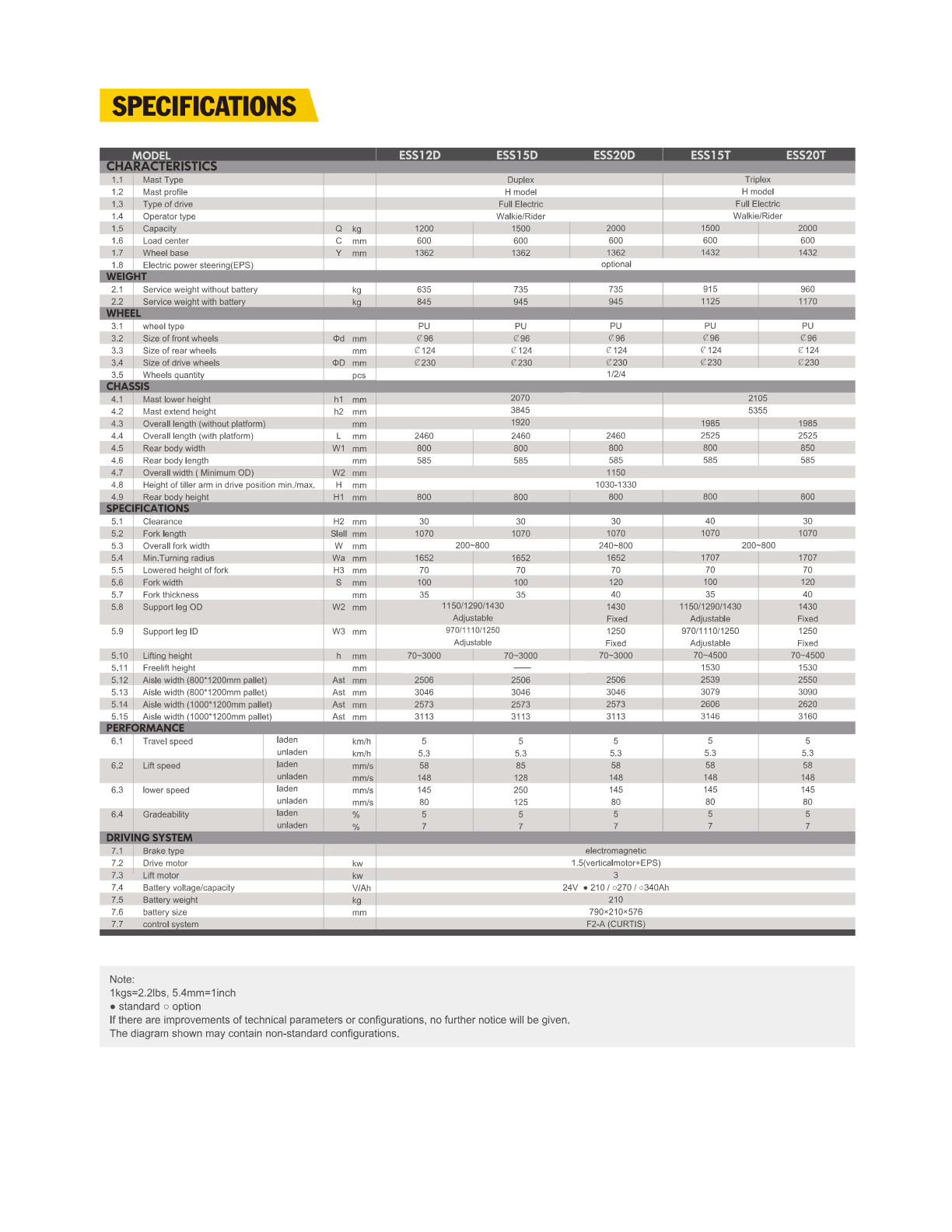 The ESS series is a classic electric stacker with high performance by AC drive technology.