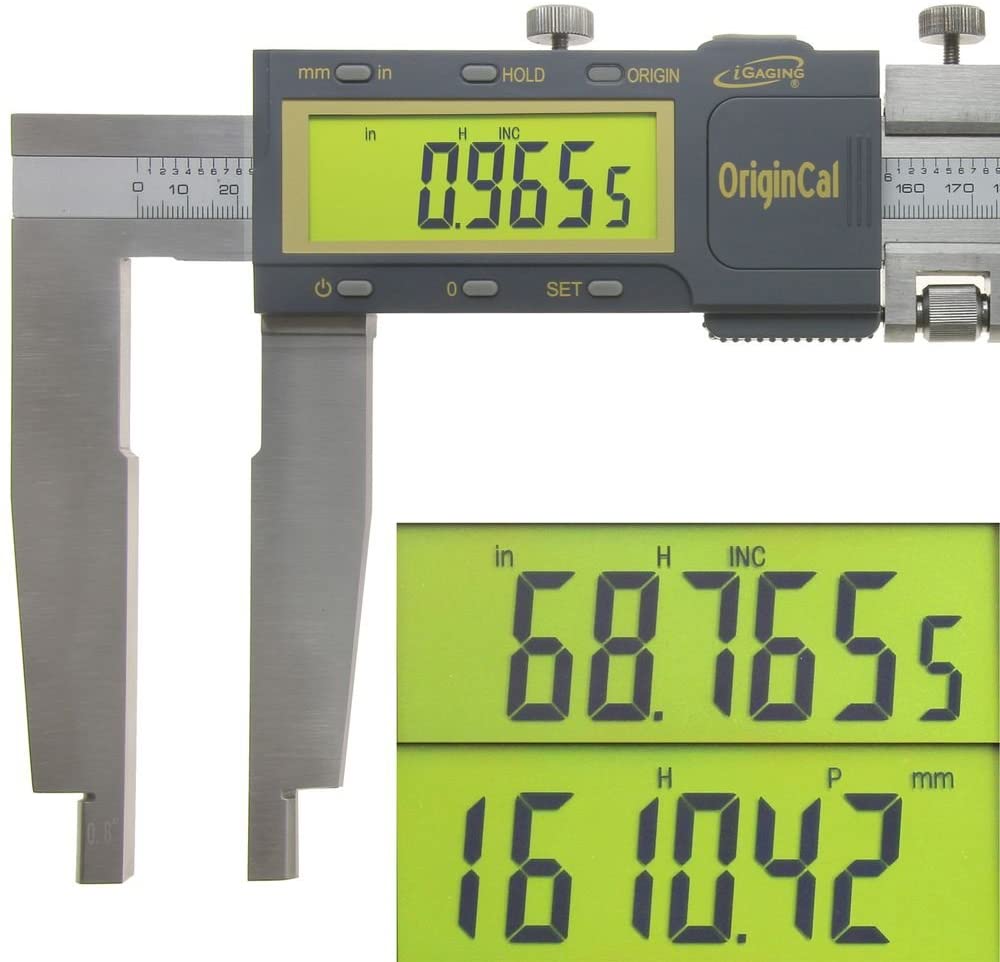 iGaging’s Origin Digital Caliper uses SUPER HIGH ACCURACY ABSOLUTE memory technology. It keeps track of its origin position once set. Whenever the digital caliper turned on, the easy-view large LCD displays the actual sensor position ready to start measuring. It’s not necessary to reset zero. The measuring speed is unlimited. Standard USB data output. High-quality surface finish for extra smooth slider movement.