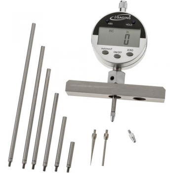 iGaging Depth Gauge Digital Electronic Indicator 0-22″ Measuring Range, 0.0005″ Resolution, 2-Position Base (Inch/MM/Fractions)