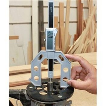 Set the height with greater accuracy! This 3-in-1 gauge combines the functions of three tools: a depth gauge, height gauge, and thickness gauge. Features super large LCD display and housed in a heavy-duty polycarbonate frame which allows it to stand freely. The frame allows the tool to be set at 70, 80 or 90 degrees as well as horizontally for accurate measuring. The measuring range is 0-150mm/0-6″, with a maximum depth of 3.10″ and a slot depth of 2.90″. Easily switches readings from inches to metric to fractions at a touch. Two hardened steel measuring anvils (flat and point) are included. Supplied with a 3V CR2032 battery.