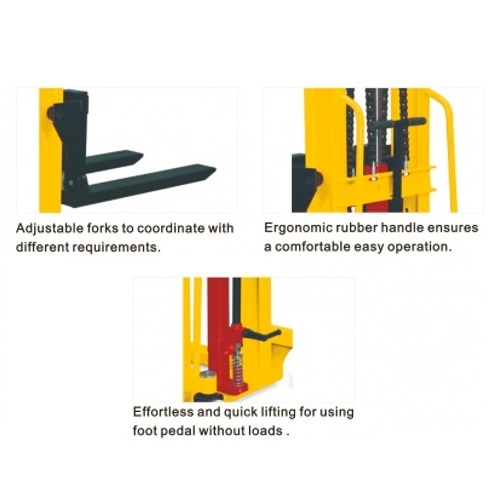 Hand stacker is hand push & hand lift stacker which provides cost-effective handling for both vehicle loading and production areas. Easy maintenance and low running costs.
