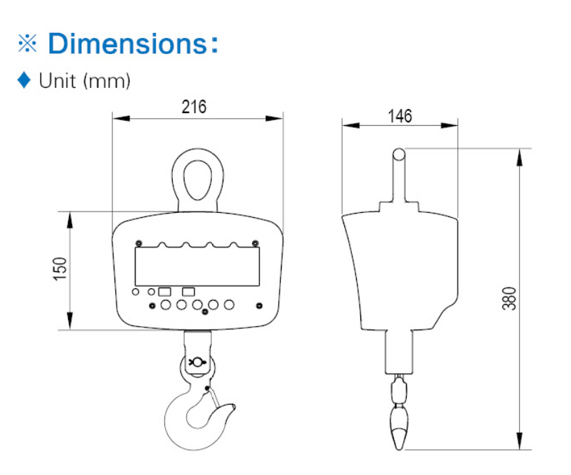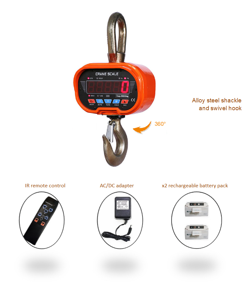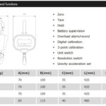 • Function: Zero, Tare, Hold, Auto power-off, Battery status, Overload alarm, Unit switch kg/ Lb., digital calibration, Resolution switch